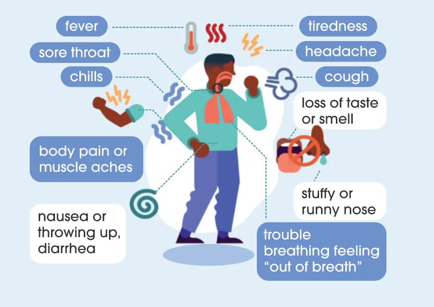You must have had at least one of the symptoms below within the last 10 days. In addition, you must have at least 1 of the symptoms shown below in blue within the last 24 hours.